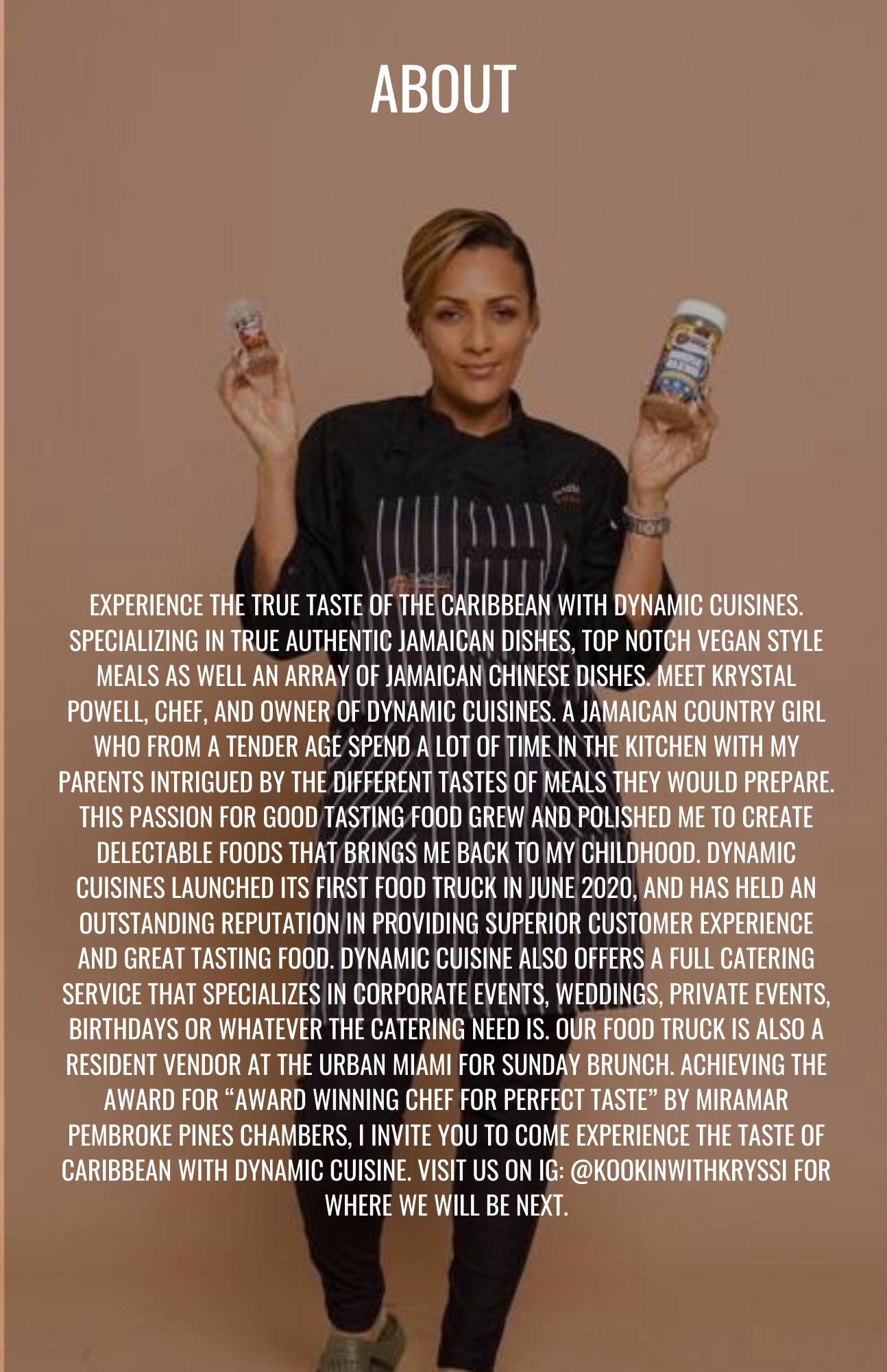 Meet Krystal Powell, chef and owner of Dynamic Cuisines — a Jamaican country girl who, from a young age, spent countless hours in the kitchen with her parents, intrigued by the flavors and techniques behind every meal they prepared. This early passion for delicious, soulful food grew into a lifelong craft, inspiring her to create dishes that take her back to her childhood.